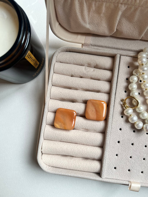 Vide-poche rond or et tacheté noir et terracotta -